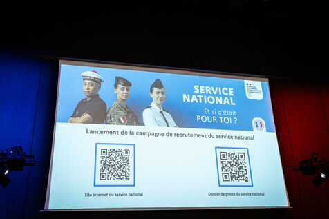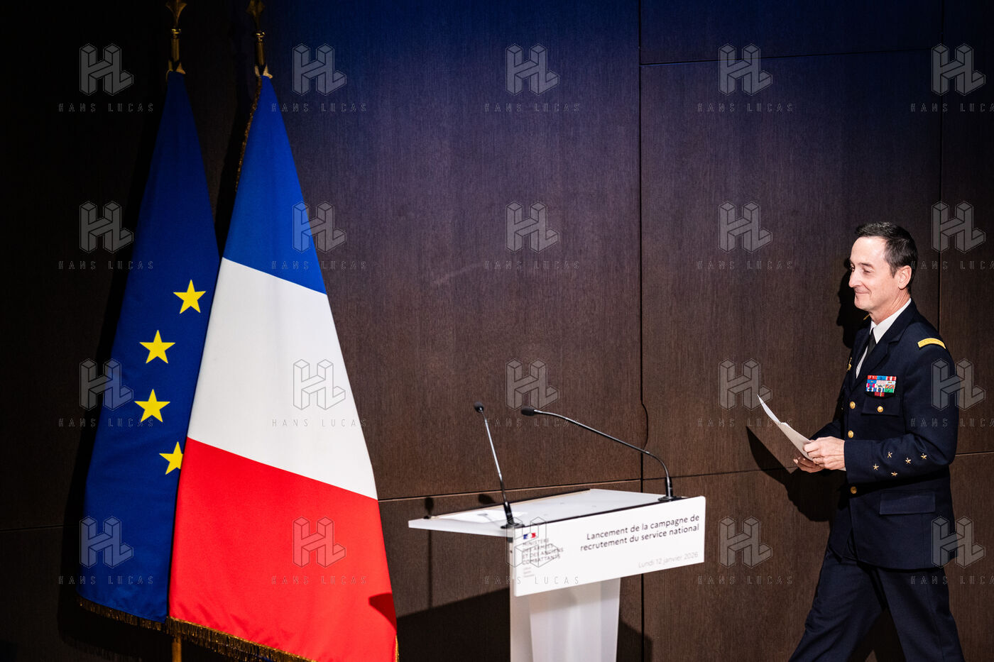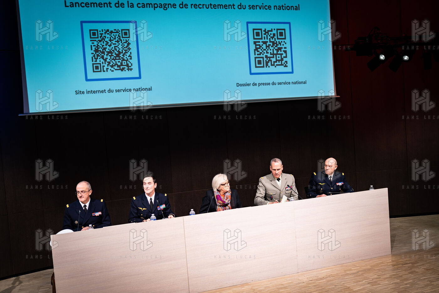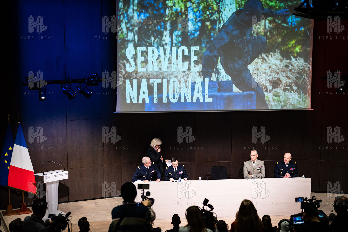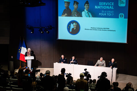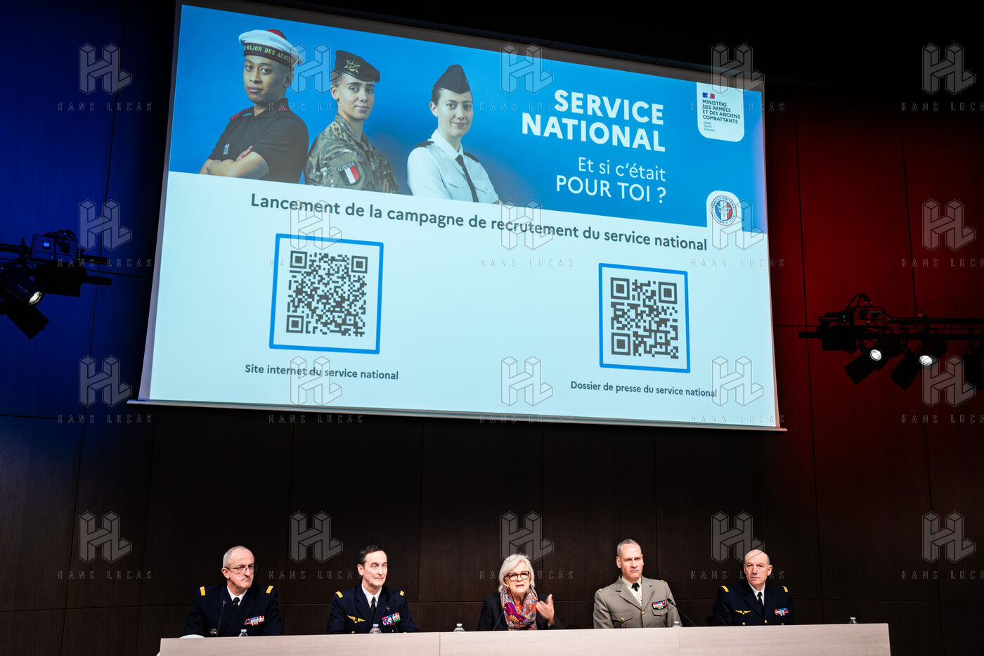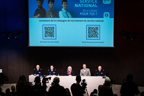 Conférence de presse du ministre des Forces armées et des Anciens combattants annonçant le lancement de la campagne nationale de recrutement pour un nouveau service militaire national.