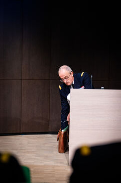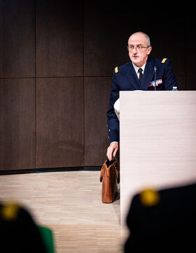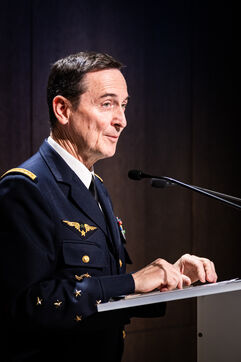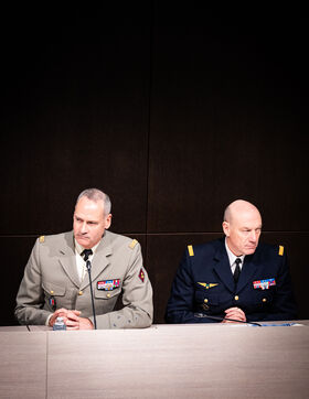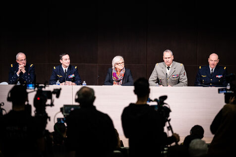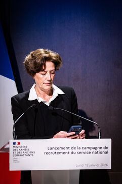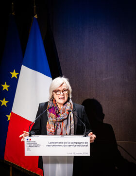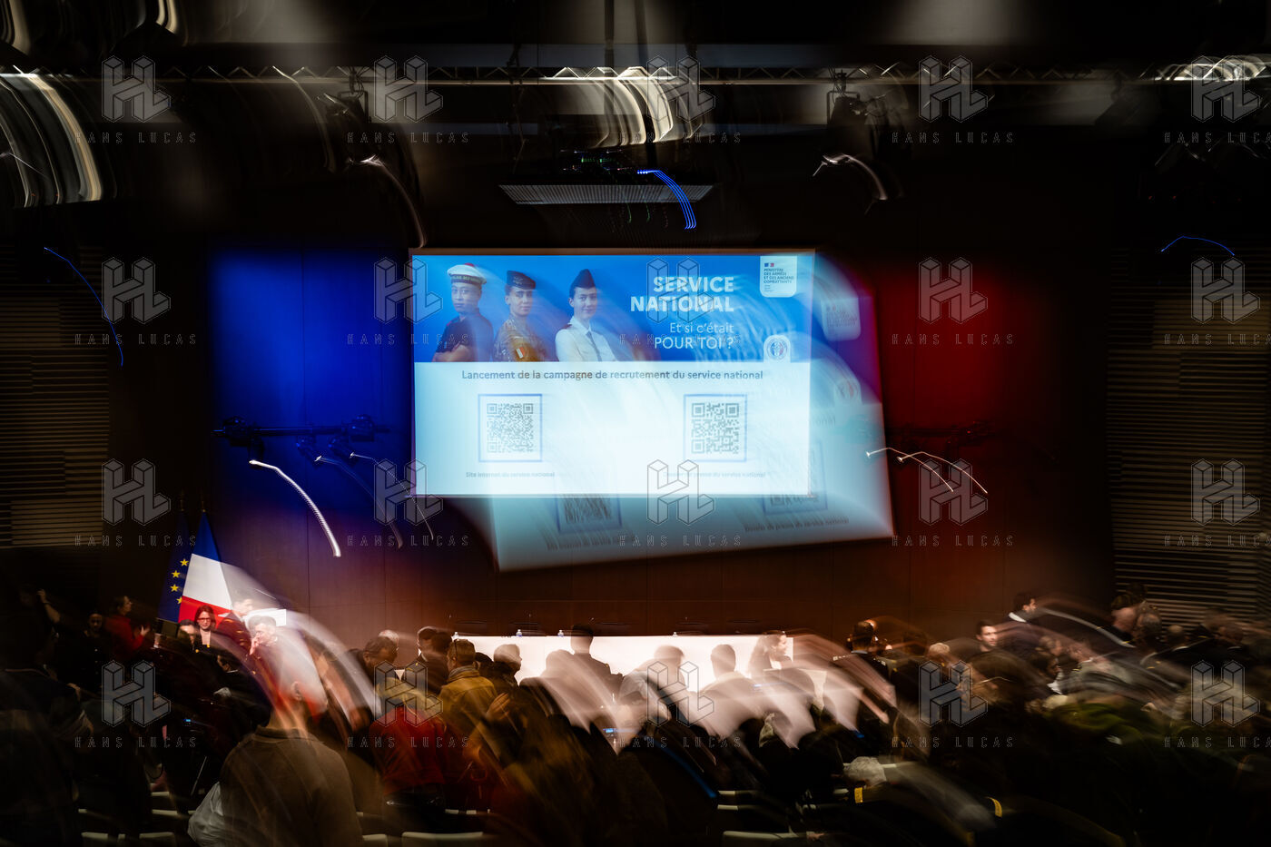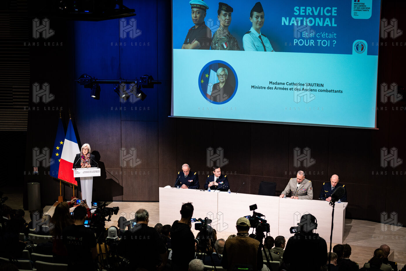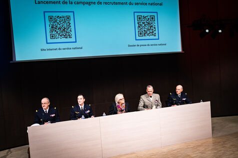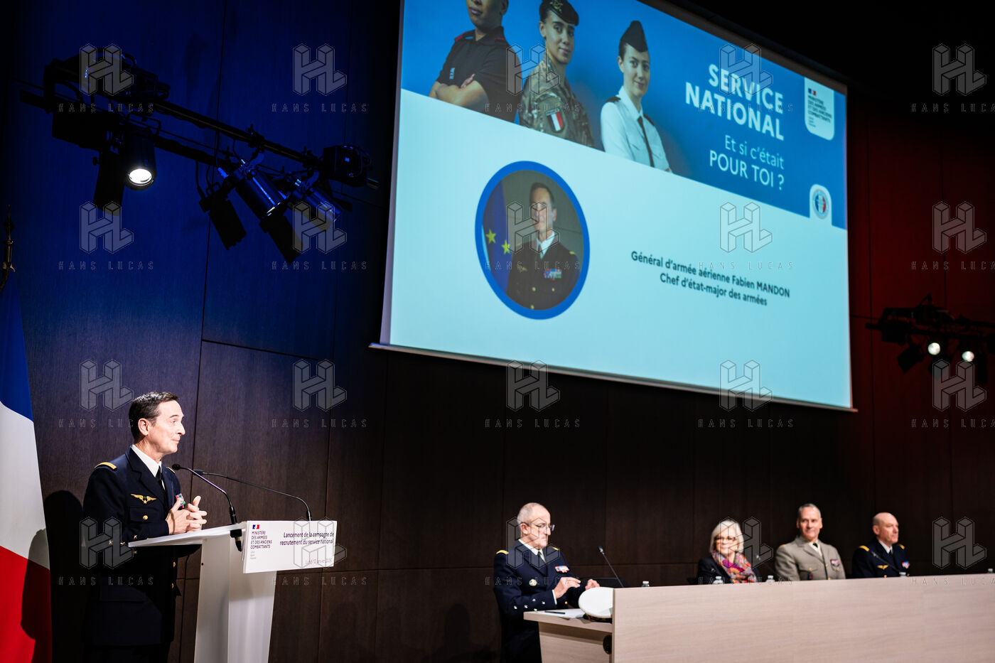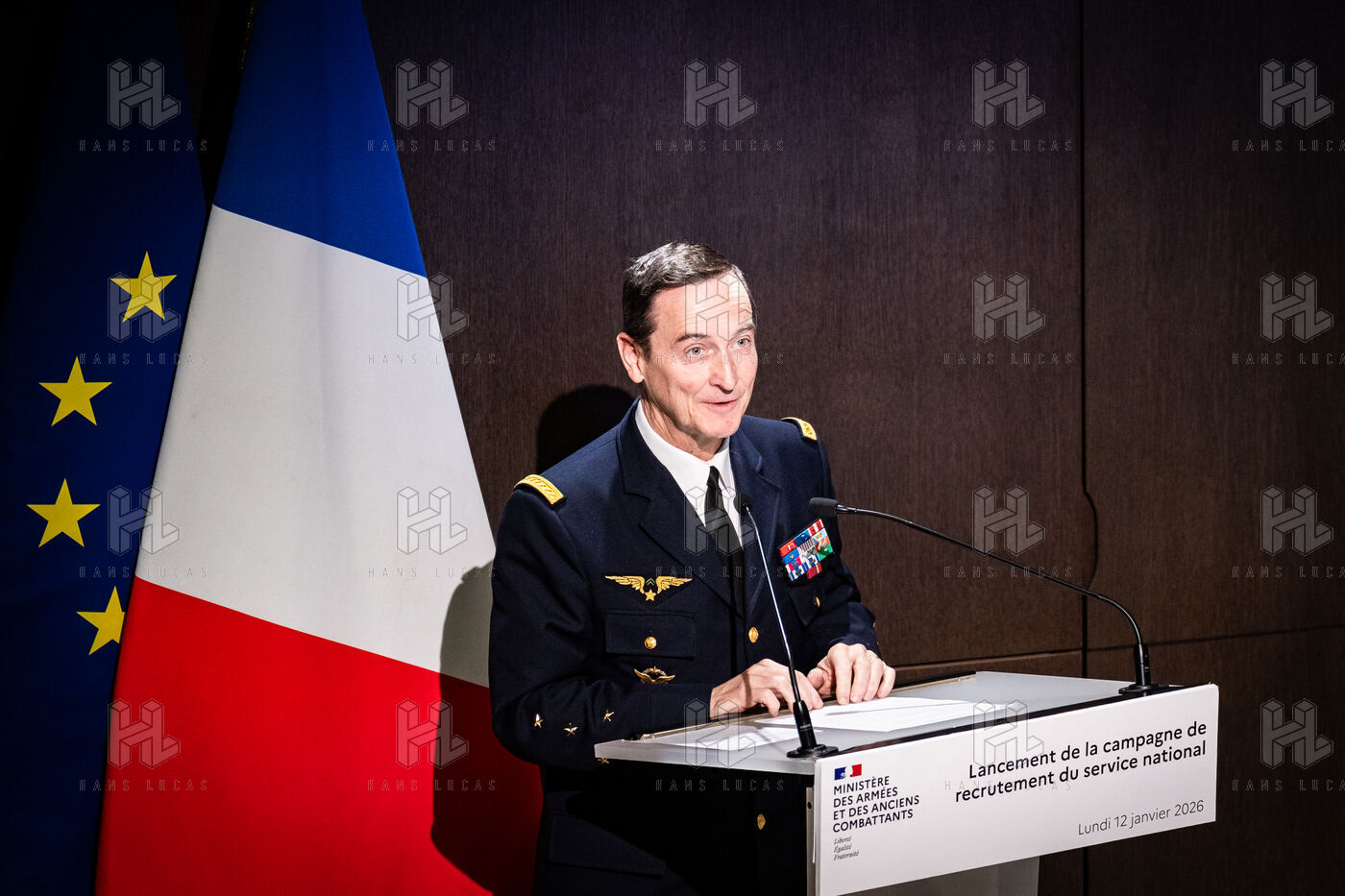 Conférence de presse du ministre des Forces armées et des Anciens combattants annonçant le lancement de la campagne nationale de recrutement pour un nouveau service militaire national.