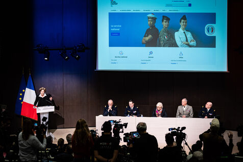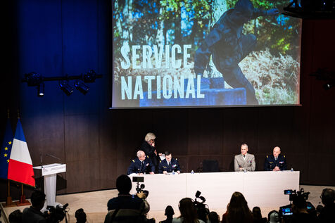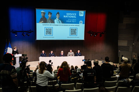 Conférence de presse du ministre des Forces armées et des Anciens combattants annonçant le lancement de la campagne nationale de recrutement pour un nouveau service militaire national