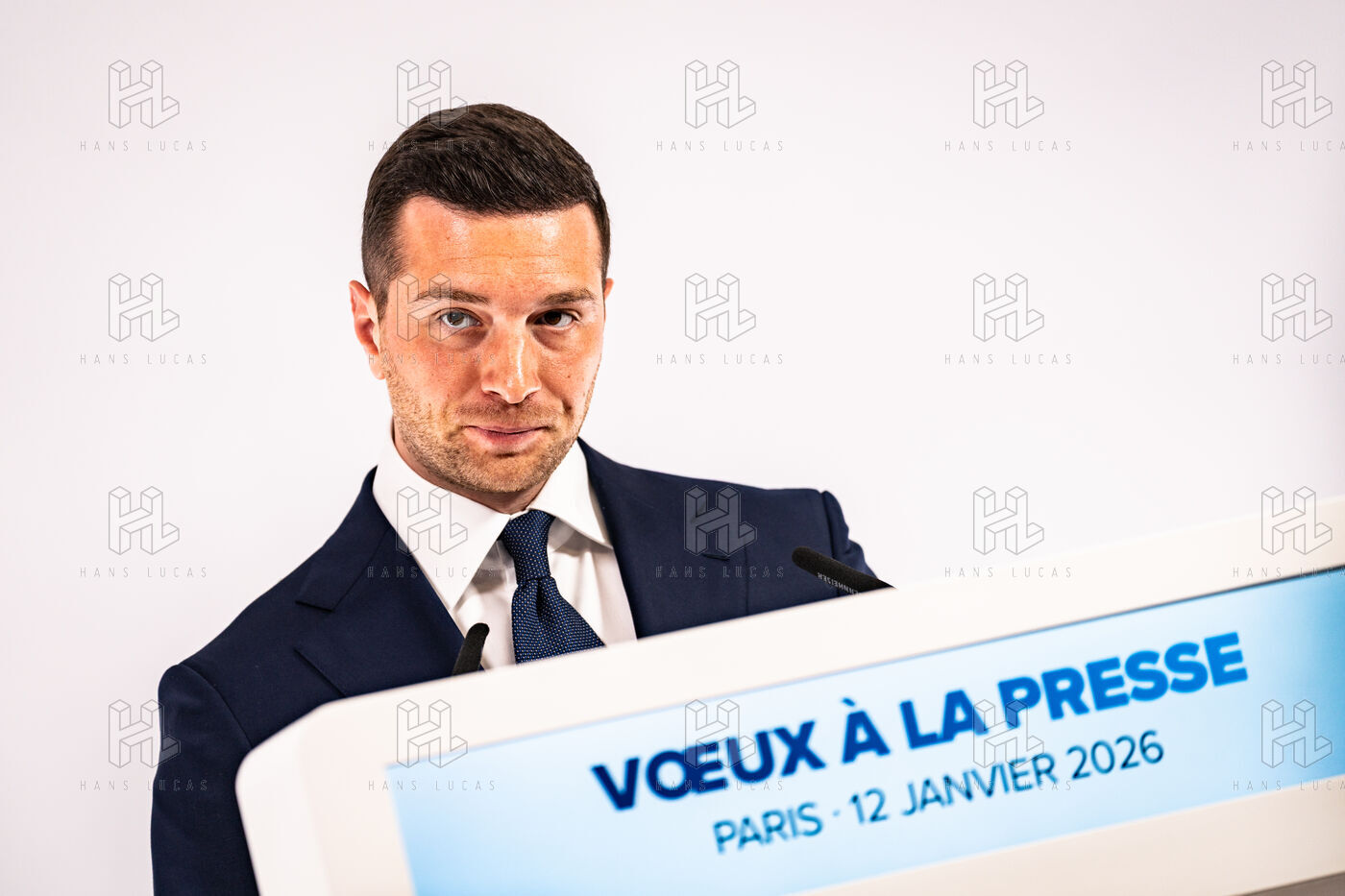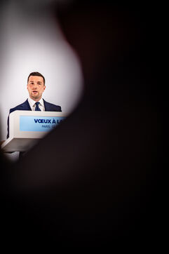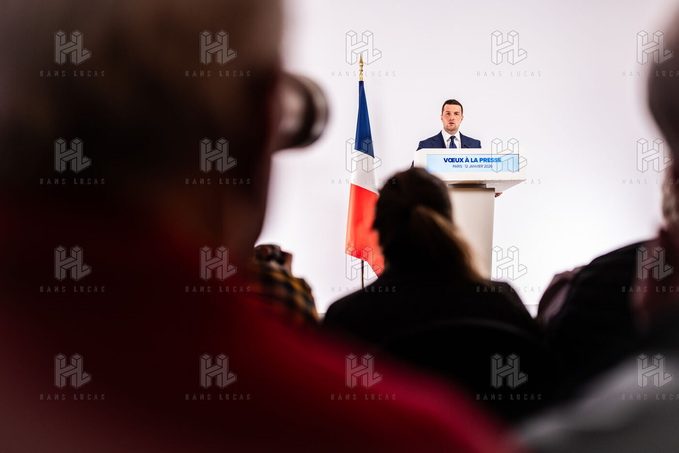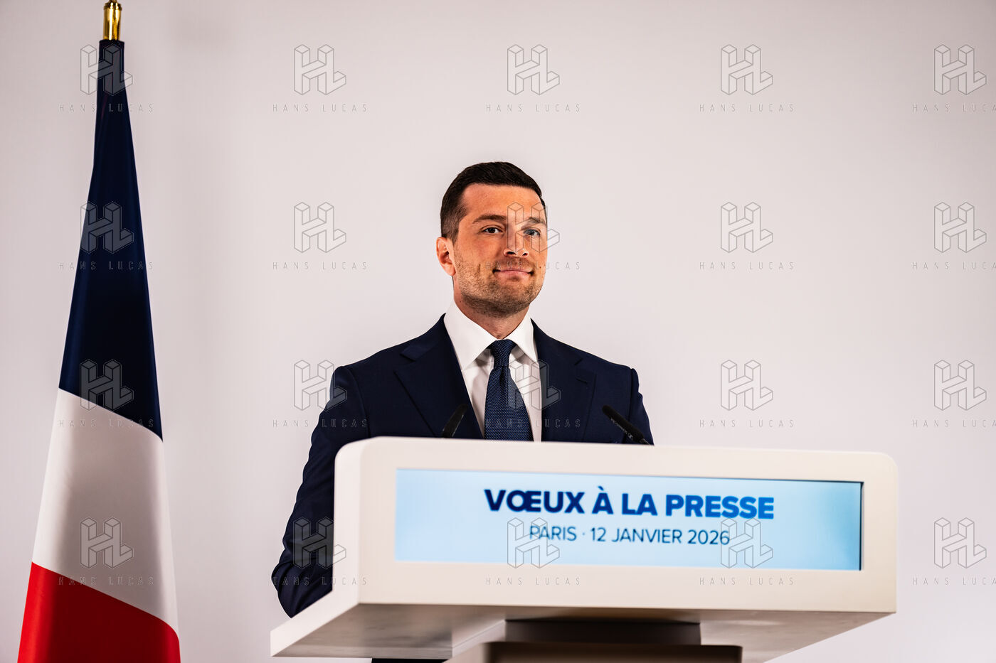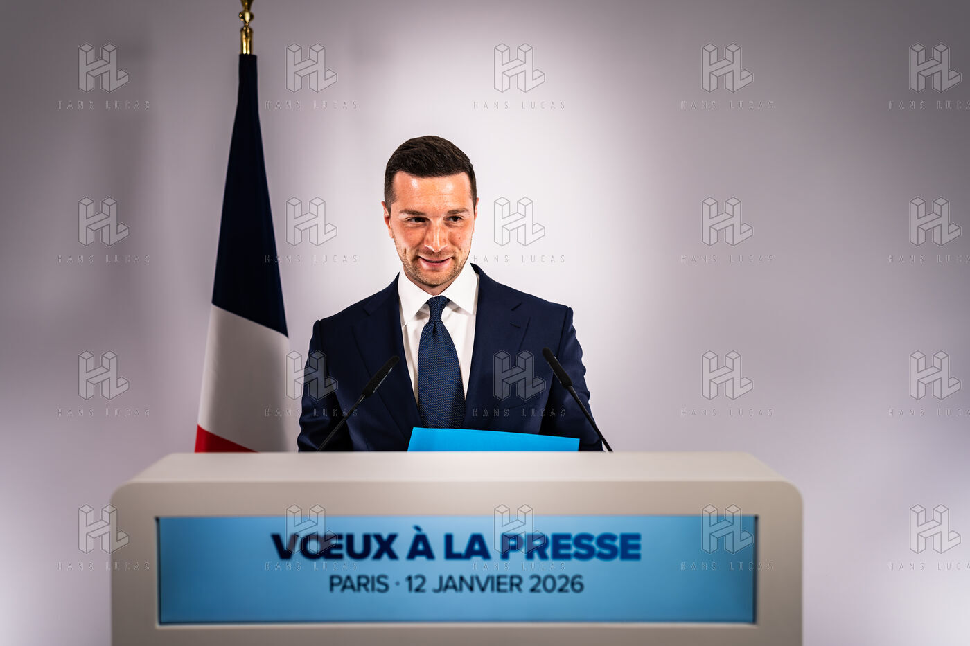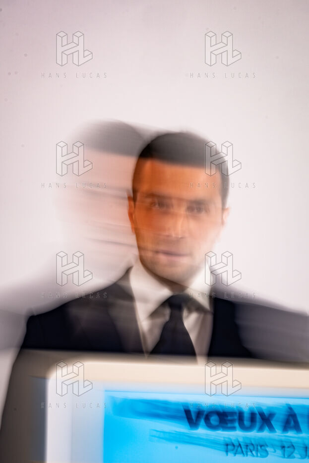 Vœux de nouvelle année à la presse de Jordan Bardella, président du parti d'extrême droite RN