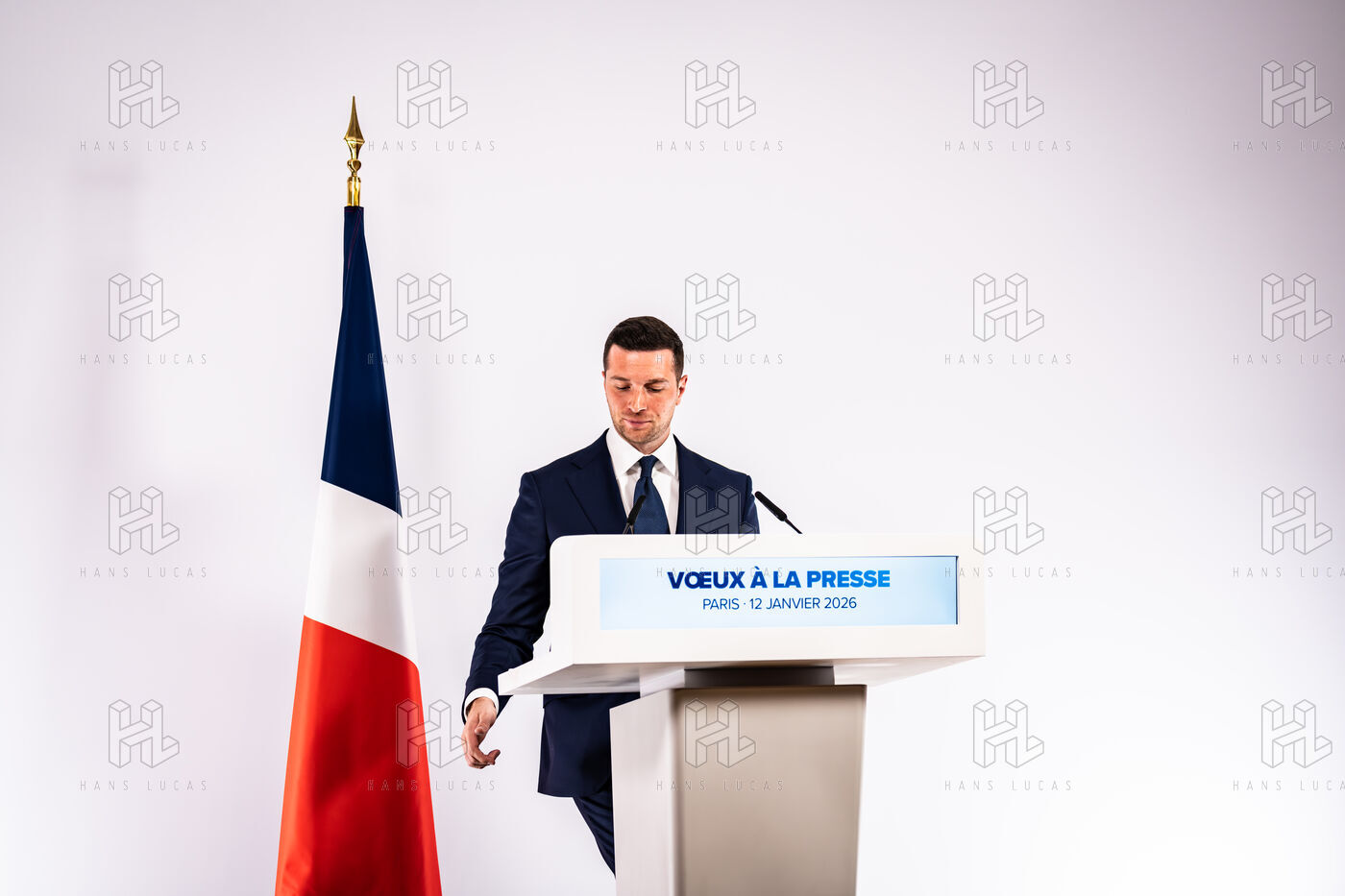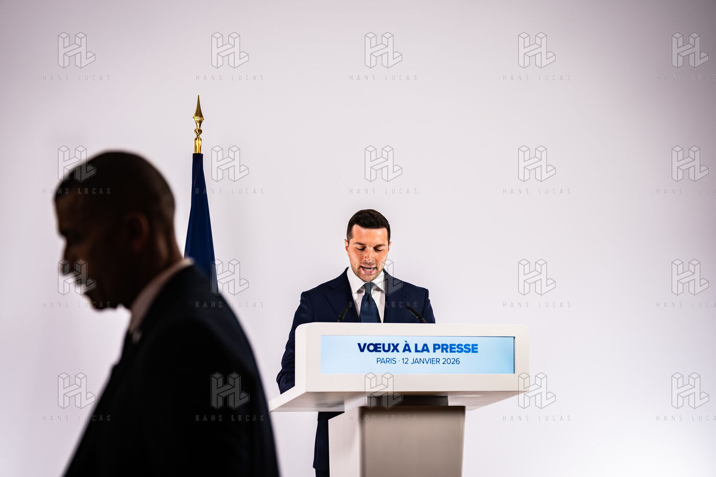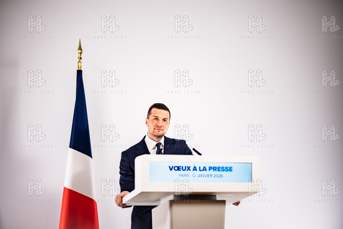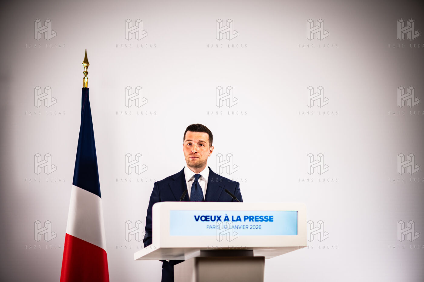 Vœux de nouvelle année à la presse de Jordan Bardella, président du parti d'extrême droite RN