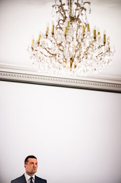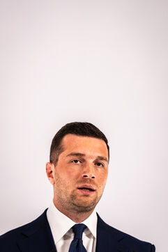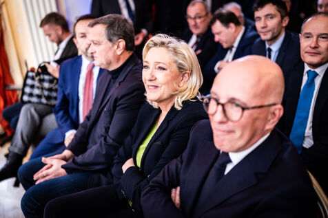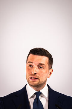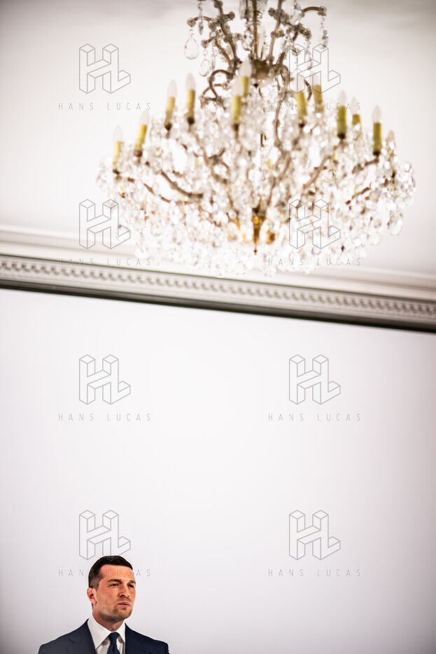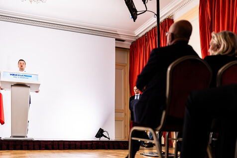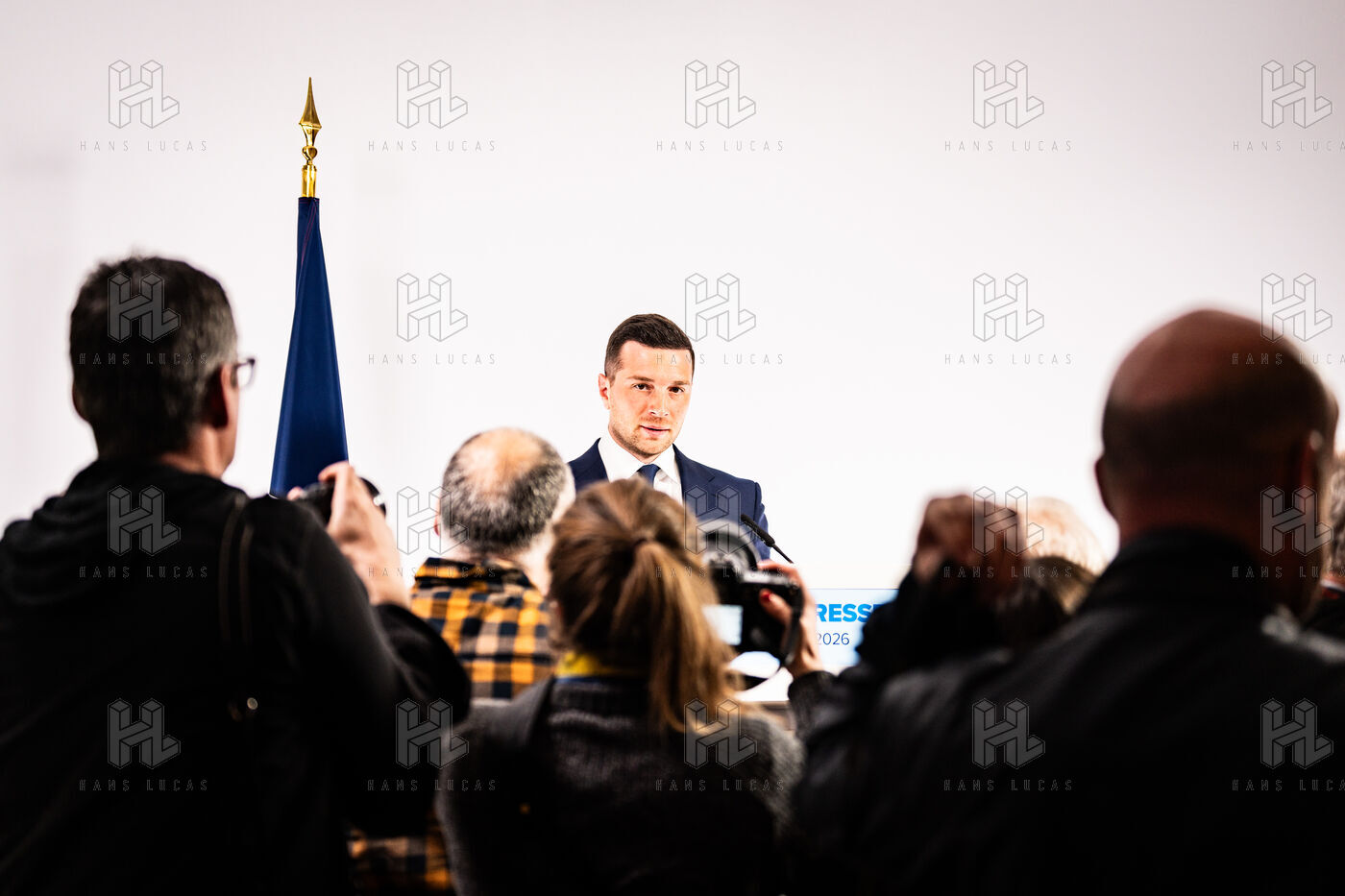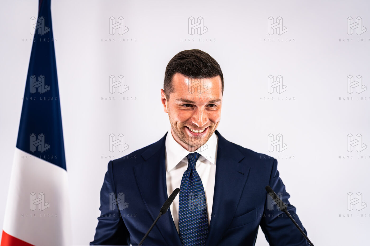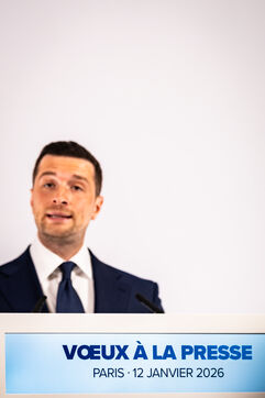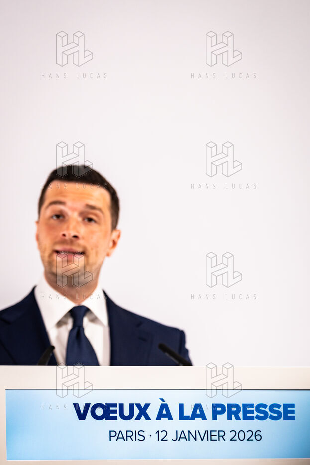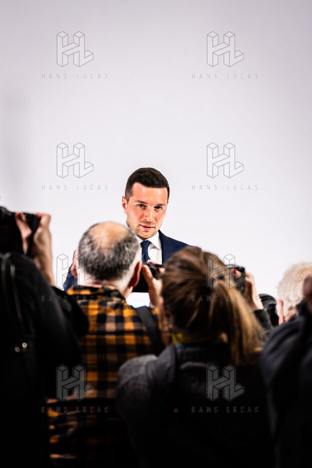 Vœux de nouvelle année à la presse de Jordan Bardella, président du parti d'extrême droite RN