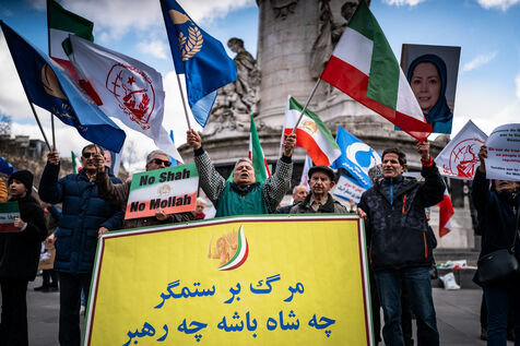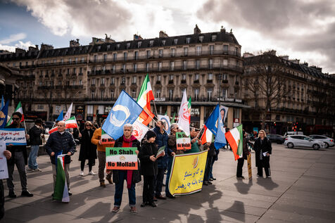 Manifestation, rassemblement en solidarité avec le peuple iranien sur la place de la République