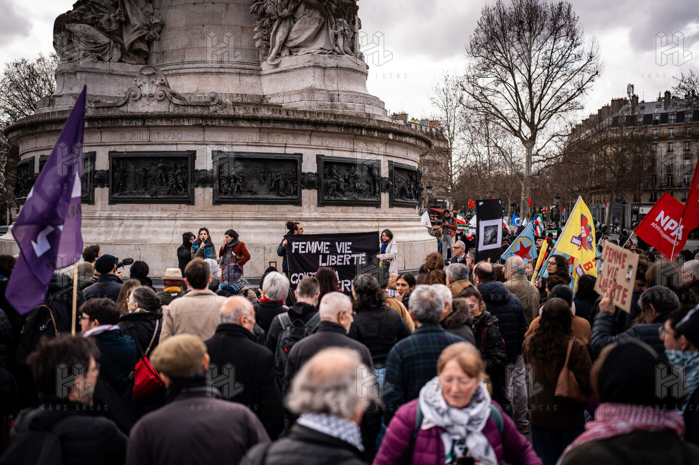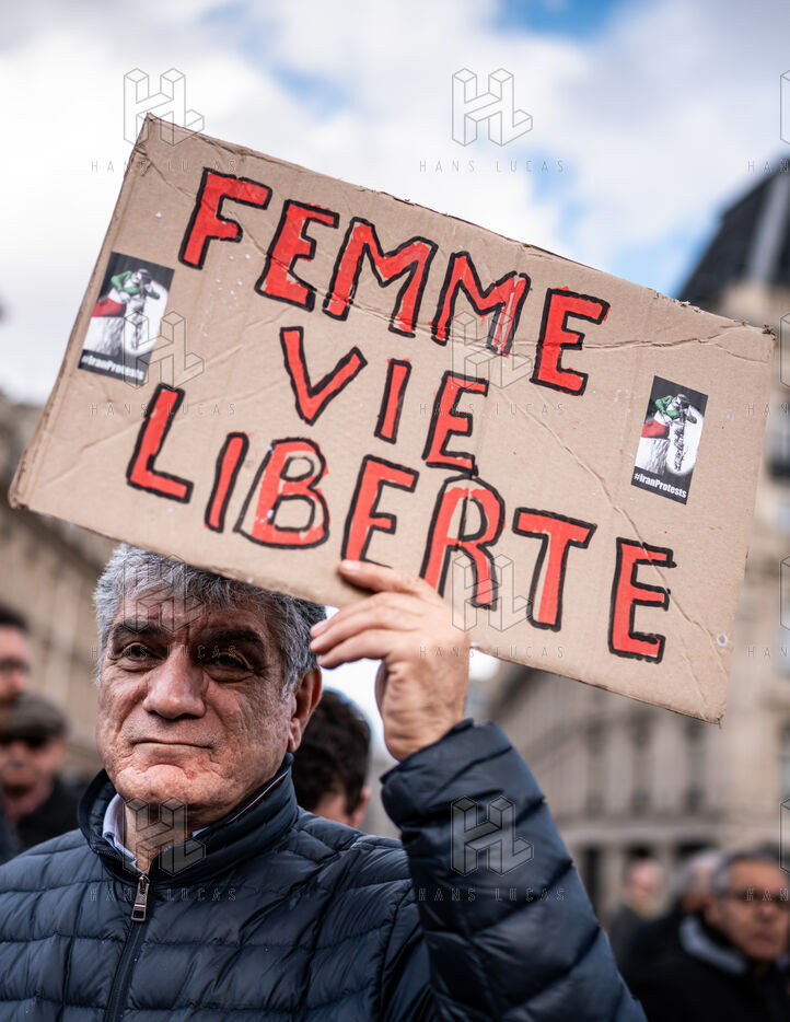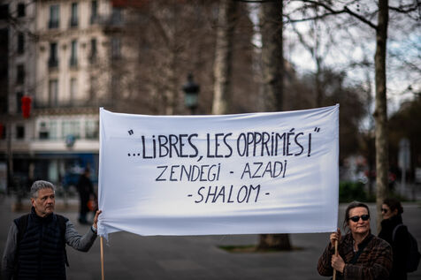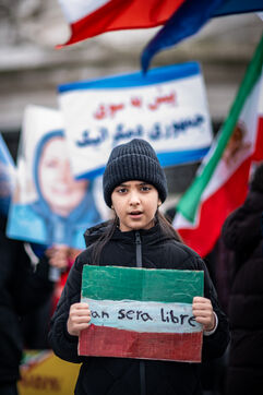 Manifestation, rassemblement en solidarité avec le peuple iranien sur la place de la République.