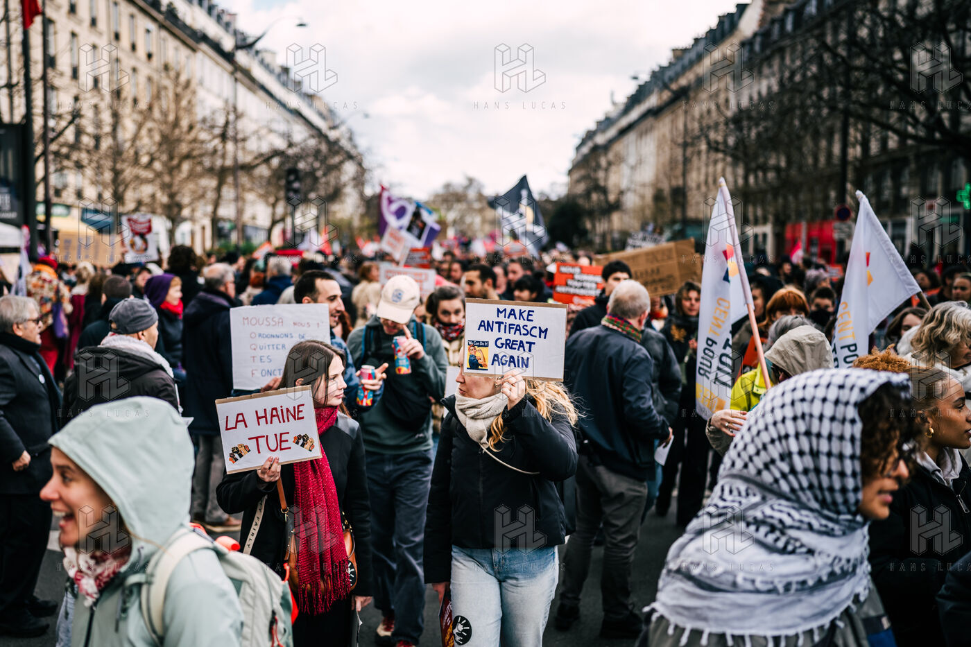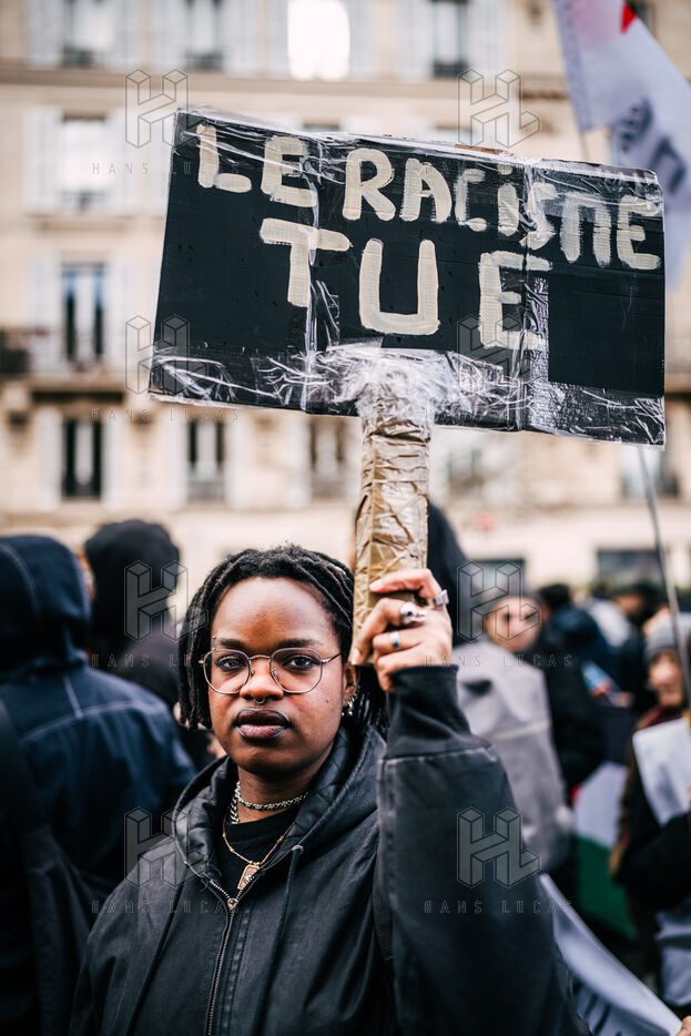 Manifestation contre le racisme, le fascisme et les violences d’État, à l’occasion de la Journée internationale contre le racisme, à Paris.