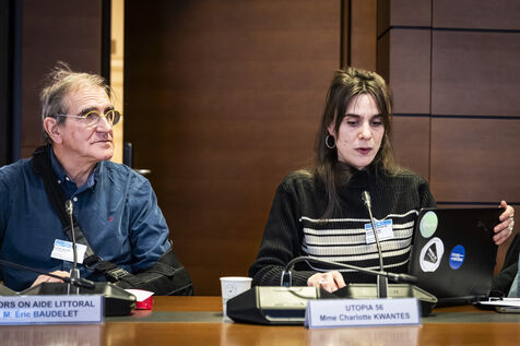 A roundtable discussion bringing together representatives from several organizations (Utopia 56, Osmose 62, Alors on aide littoral, Human Rights Observers, and Salam).
