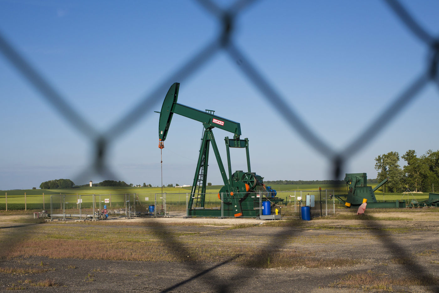 2015/05/17. France. Illustration d eoliennes, puits de petrole et silo a grain en region Champagne.