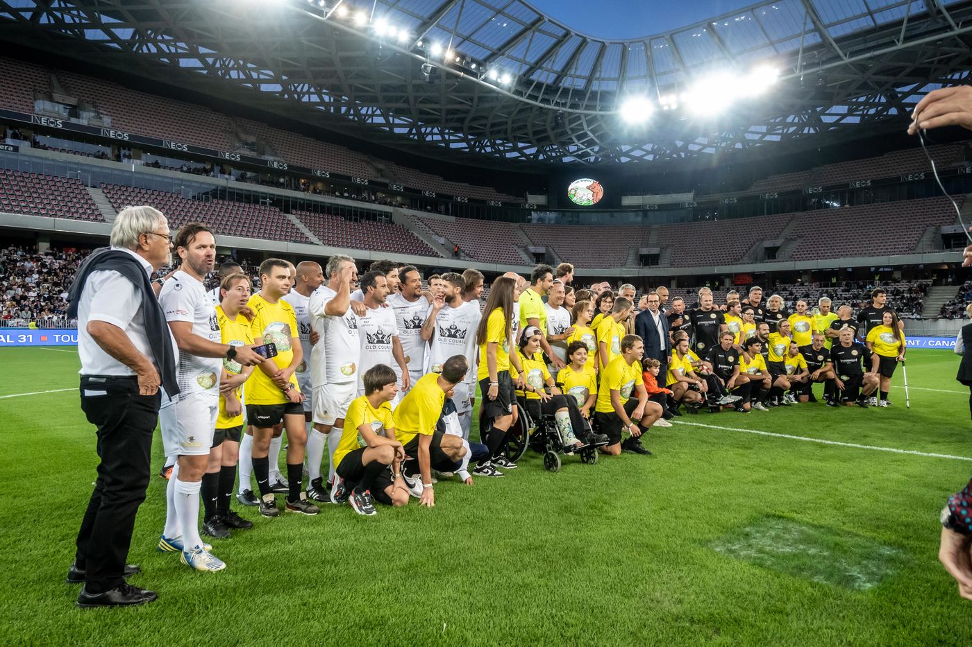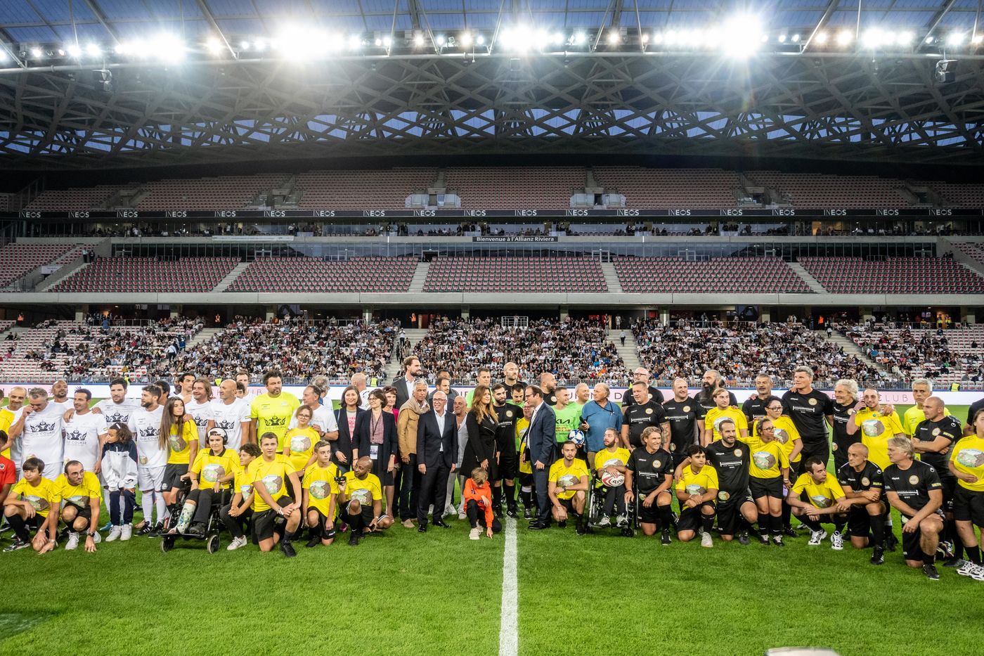 Charity match for the association "Un espoir, un sourire pour la vie" (A hope, a smile for life) at the Allianz Riviera, supported by the former footballer Pascal Olmeta. This match saw former soccer and rugby legends confront each other during 45 minutes of soccer and 40 minutes of rugby.
