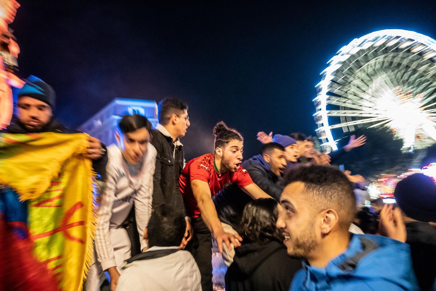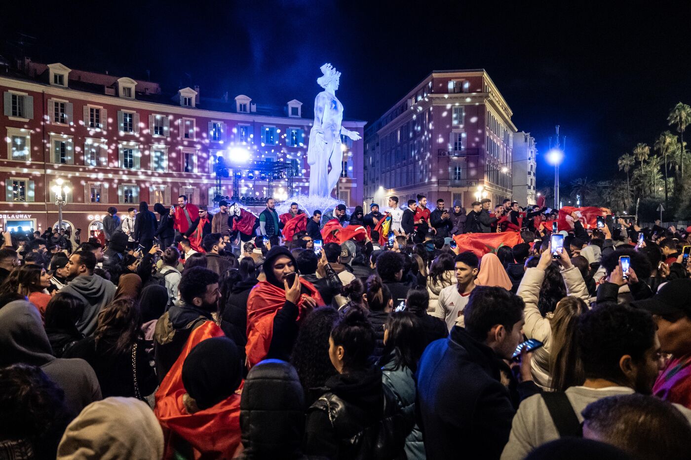Moroccan fans gathered at Place Massena in Nice to celebrate their country's historic qualification for the semi-finals of the World Cup in Qatar.