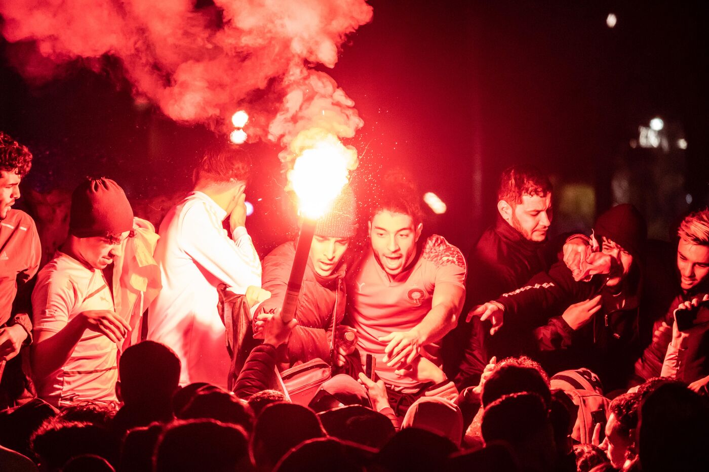 Des supporters Marocains se sont regroupés place Massena à Nice pour célébrer la qualification historique de leur pays pour la demi-finale de la coupe du monde de football au Qatar.