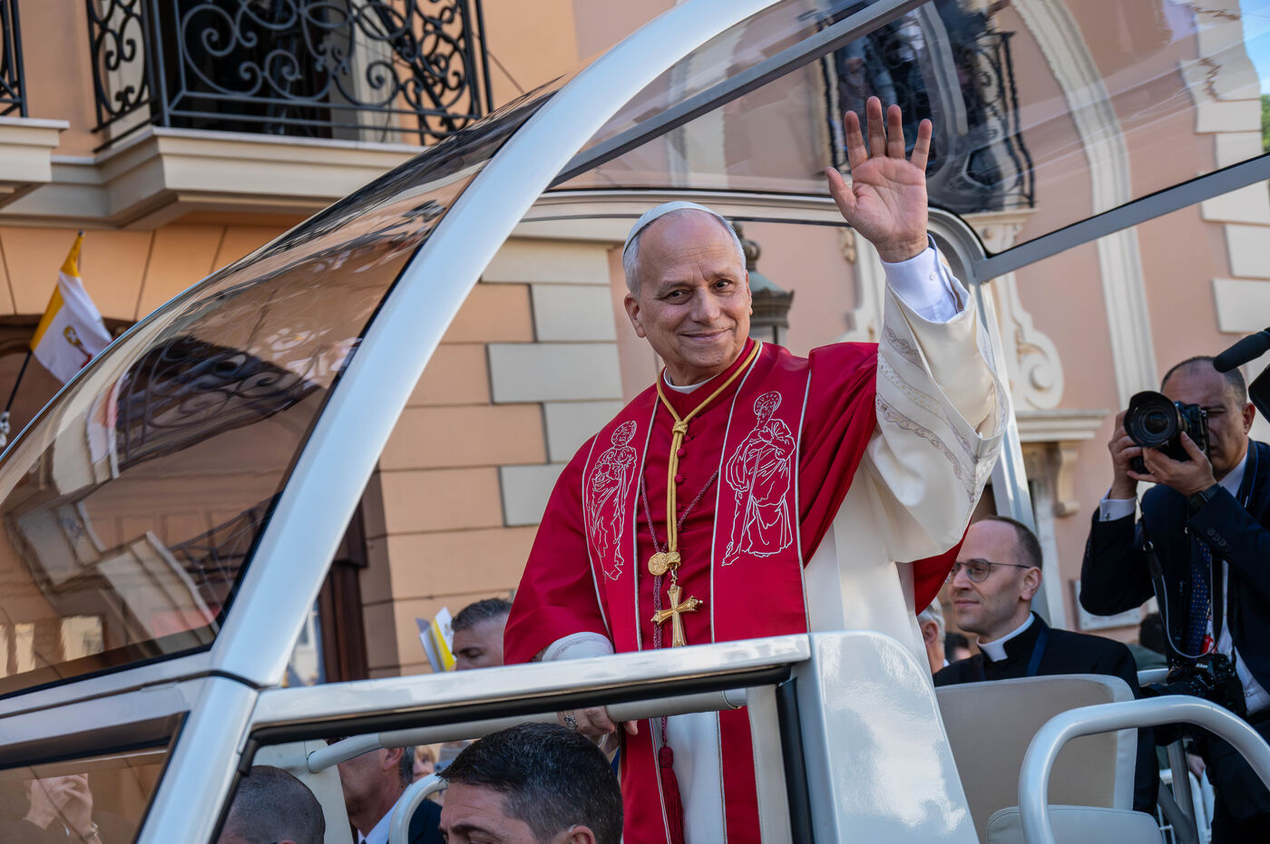 On 28 March 2026, Pope Leo XI visited the Princely Palace of Monaco where he was officially welcomed by Prince Albert II. This meeting between the Pontiff and the Sovereign marked an important moment of the visit, symbolizing the strong ties between the Principality and the Catholic Church.