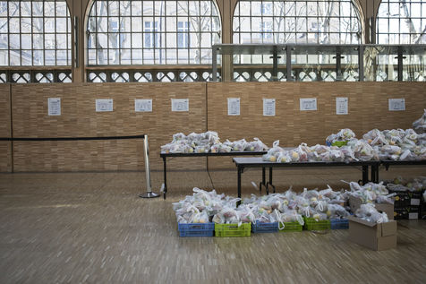 Distribution de repas aux SDF durant la crise de Covid-19, Paris, 24 mars 2020.