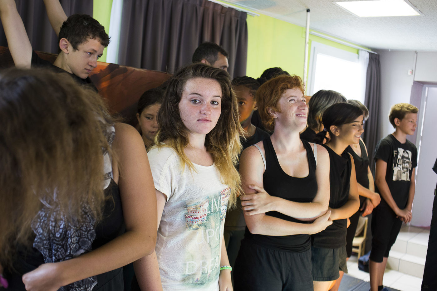 17 juillet 2015, Epinal (Vosges). A Epinal pendant les vacances d'été, les enfants accompagnés par la délégation du Secours Catholique au sein du centre social Bitola préparent une représentation théâtrale et une soirée avec un repas solidaire, les denrées ont été collectés à titre gratuit. Ils habitent le quartier champbeauvert d'Epinal. Peu d'entre eux partent en dehors de leur lieu de vie pendant les vacances. Ils sont encadrés dans cette action par des salariés du Secours Catholique.
