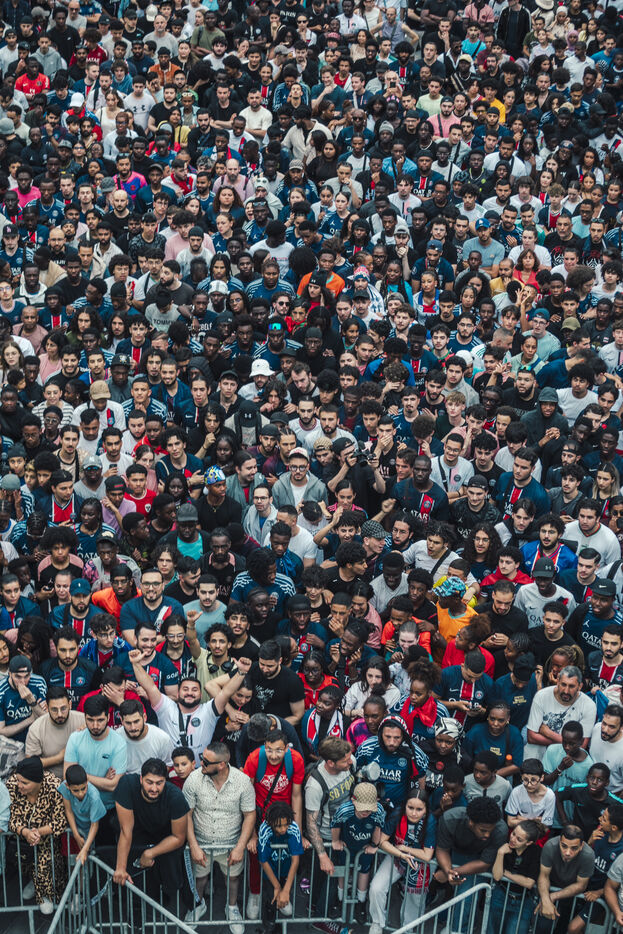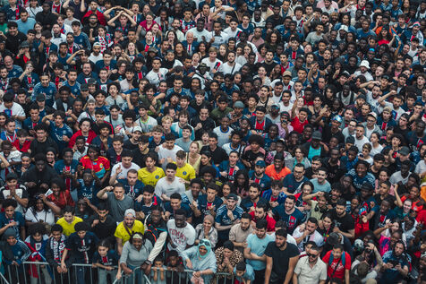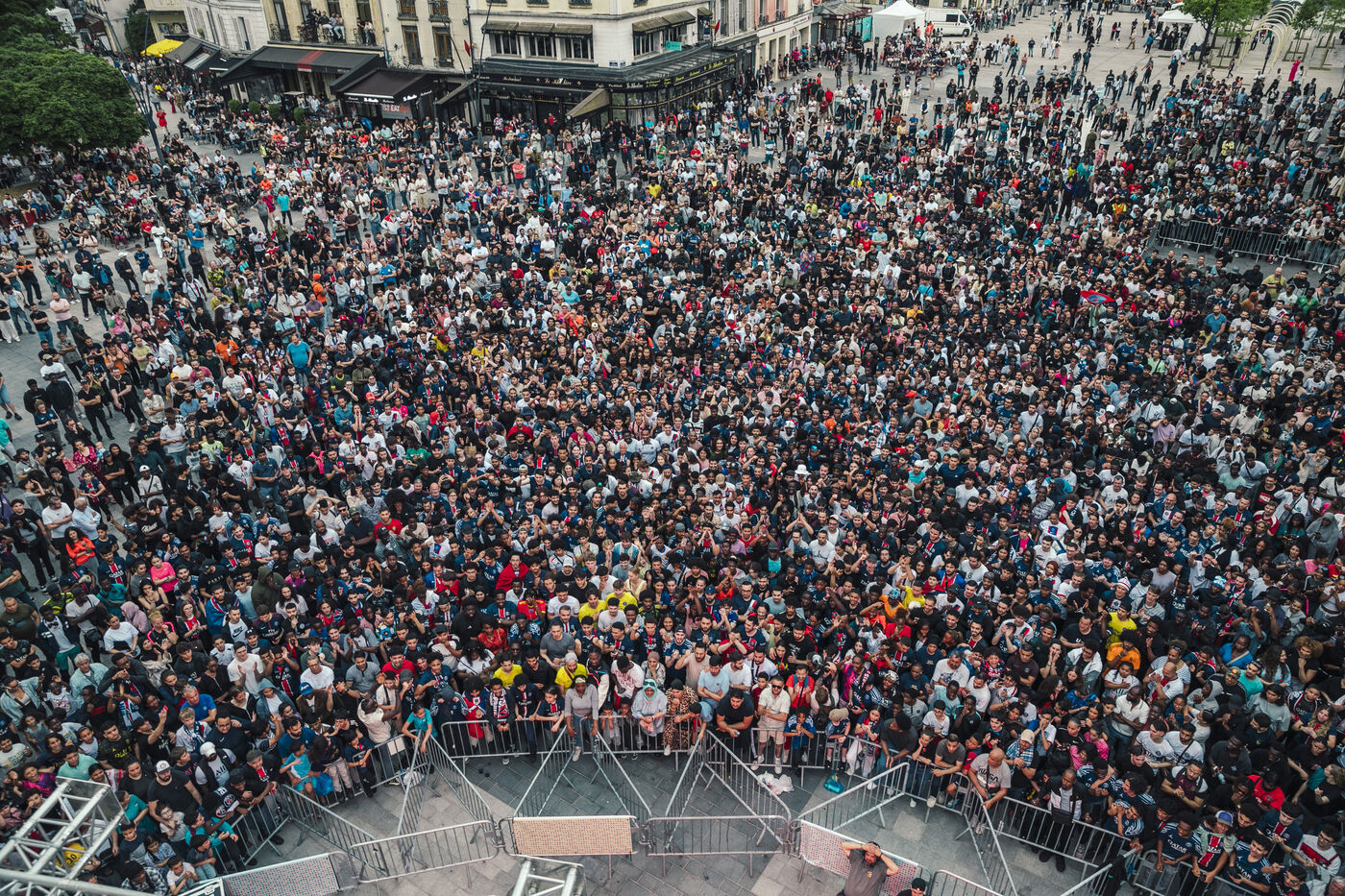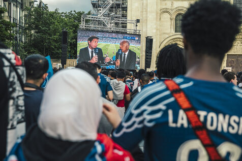 May 31, 2025, Saint-Denis (93), FRANCE. The Saint-Denis fan zone, in front of the town hall, during the Chamions League final between Paris-Saint-Germain and Inter Milan.